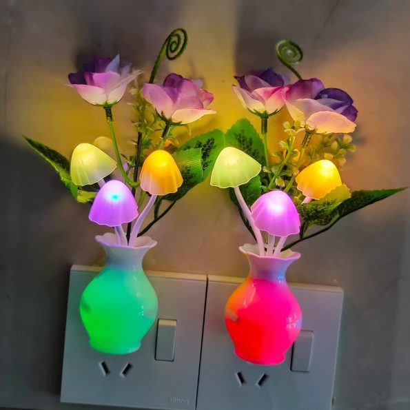 - The flower bottle and the middle mushroom can change color,very pretty cute light for decor in our home.