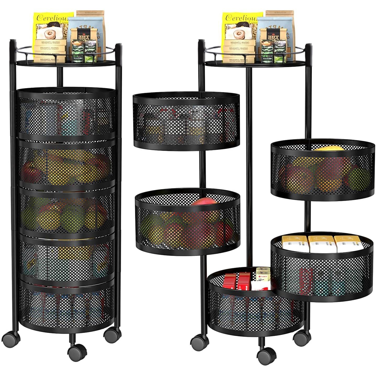 Are you tired of the clutter in your kitchen, struggling to find space for your fruits and vegetables, and constantly searching for a practical storage solution? Look no further! Our 5 Layer Kitchen Rotating Trolley Storage Rack is here to revolutionize your kitchen organization game.