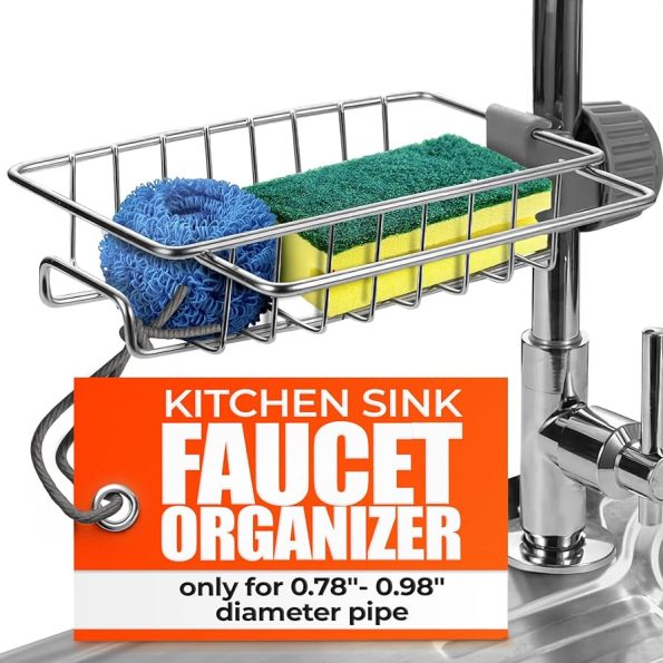 - High Quality: Our kitchen sponge holder is ❗suitable only for 0.78″ – 0.98″ diameter pipe❗ made of stainless steel, which is waterproof and rust-proof. You can use it for an extended period.