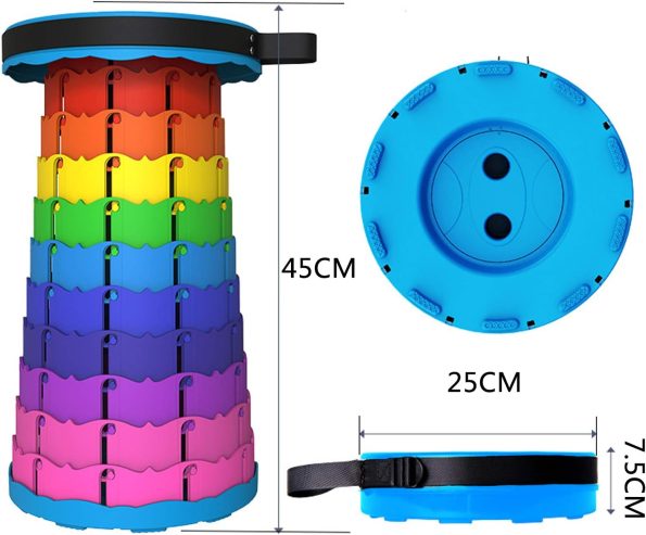 - [Lightweight and portable]: This retractable stool weighs only 1kg. This retractable stool is lightweight and compact, so it can easily fit into a suitcase or storage box. The adjustable shoulder strap makes the stool easy to hold in your hand or hang on your shoulder. Ideal for portability.