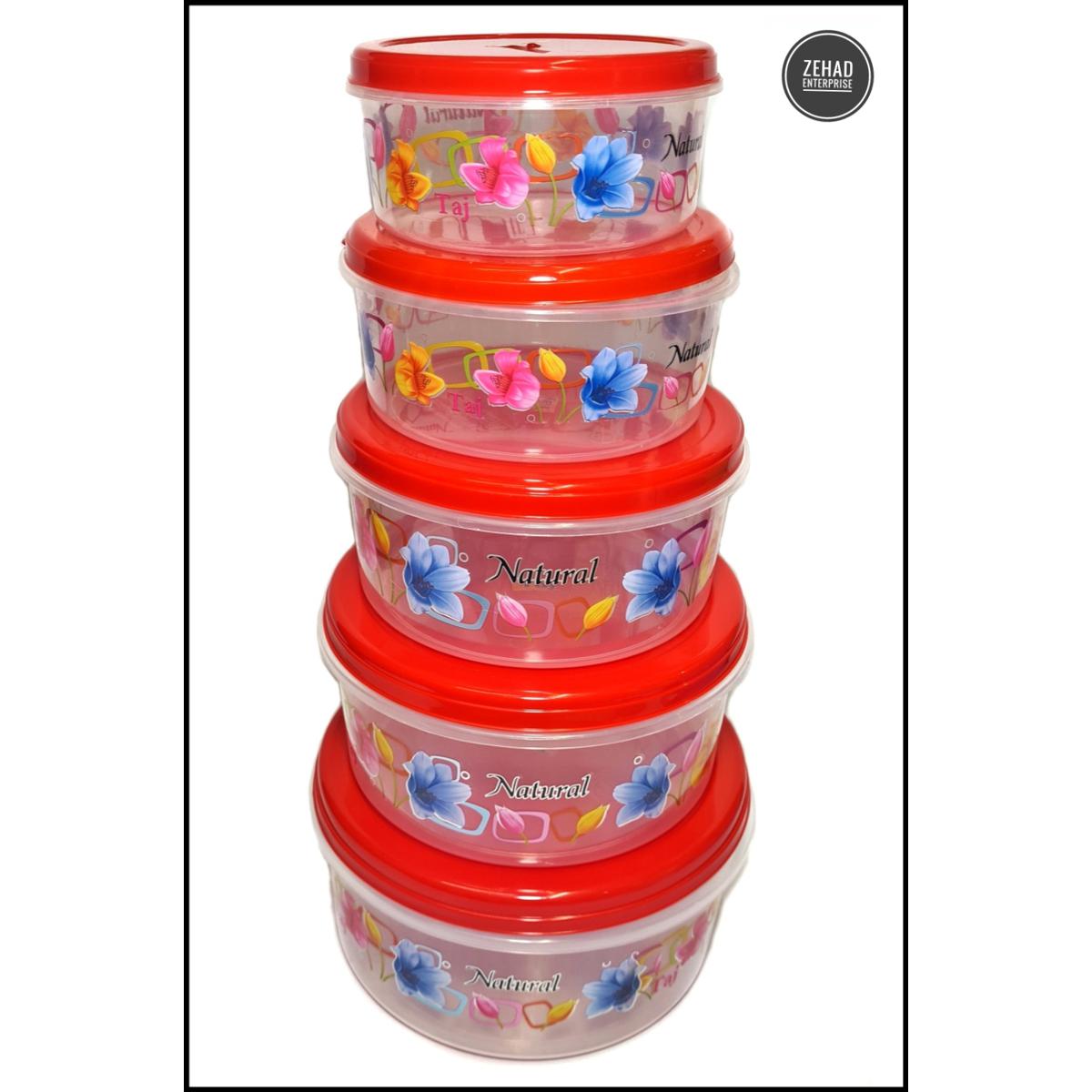 Taj 5 Pieces Round Storage box Set With Lid for food stroage